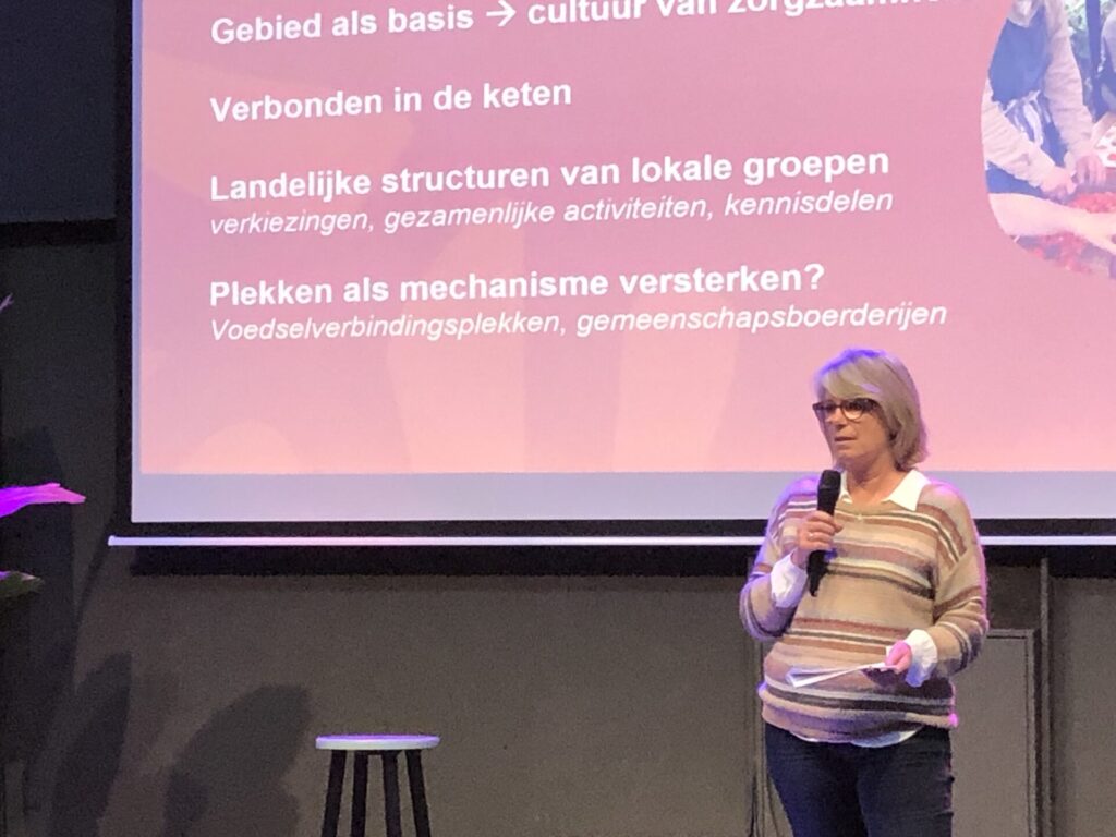 Tijdens de interactieve sessie leerden we van voorbeeldstructuren die in de groene ijsberg ontstaan vanuit een ander paradigma, met andere praktijken en symptomen, en die zelf kennis en ervaring inbrengen om ecosystemen rond deze thema’s op te bouwen. Dat deden we op de thema’s voedselraden, korte keten en samenwerken in het gebied/ bioregio.